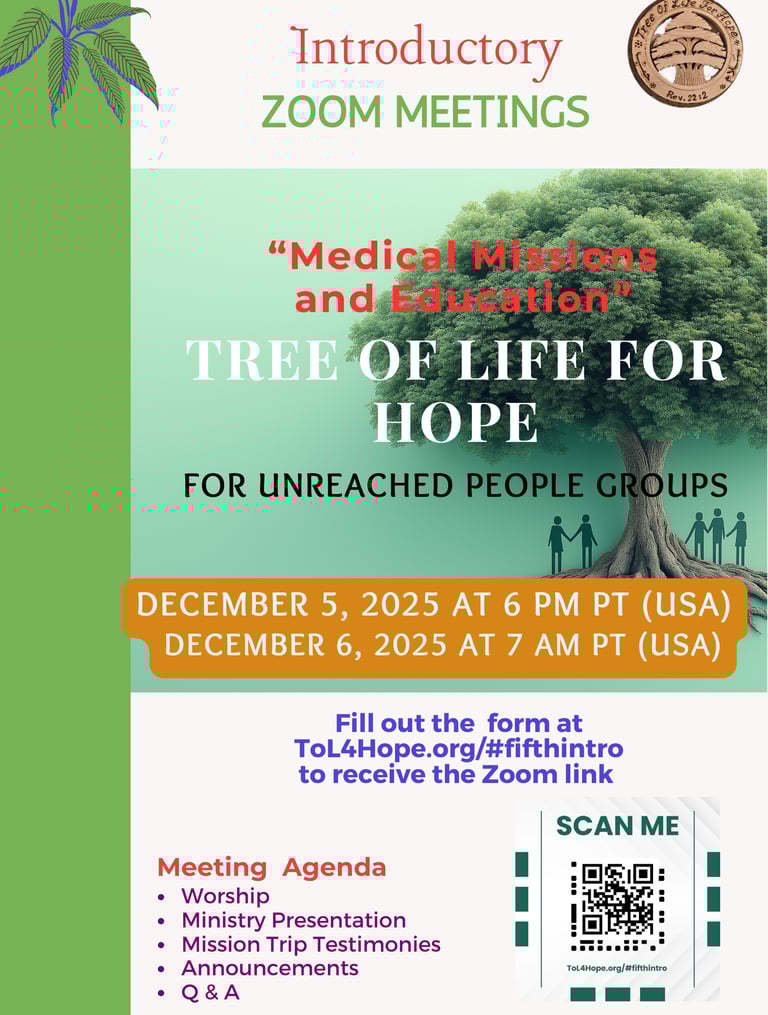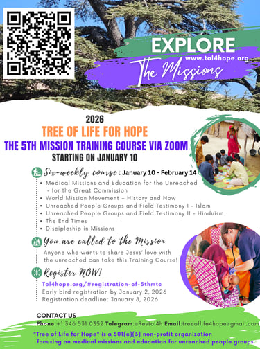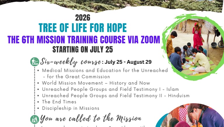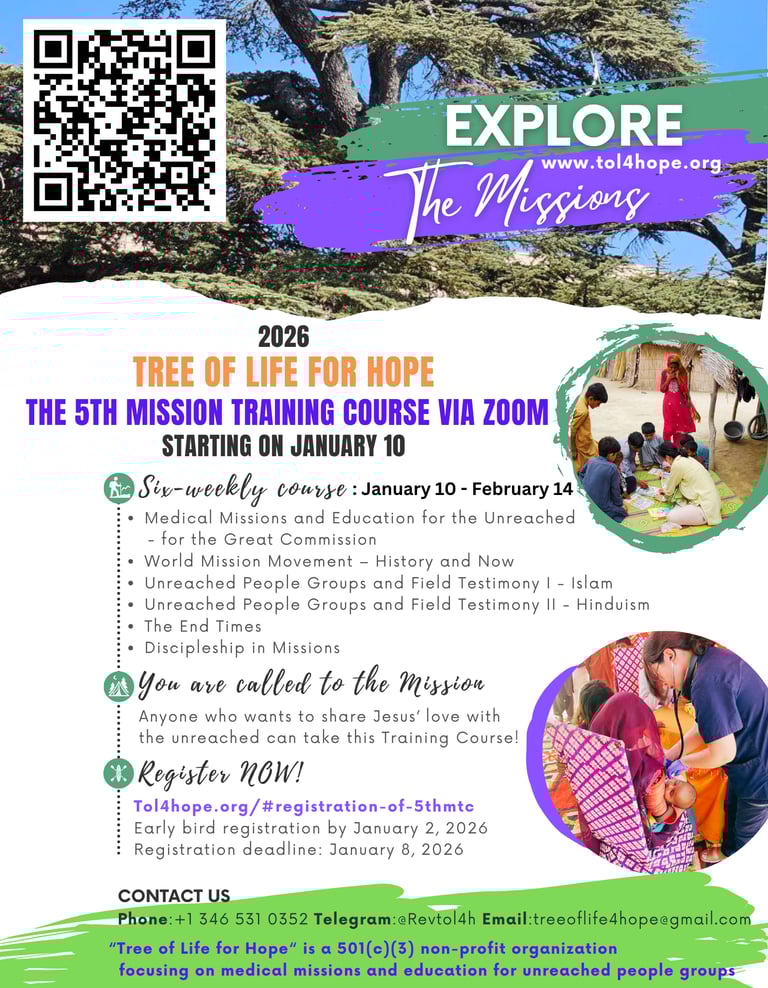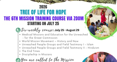 We are excited to announce that the ToL4Hope Mission Training Course (MTC) is available online via Zoom! This course is specifically designed for churches and Christians worldwide who are interested in going on mission trips for unreached people groups. The MTC consists of weekly classes held over six Saturdays, featuring various lecture topics and speakers each week.