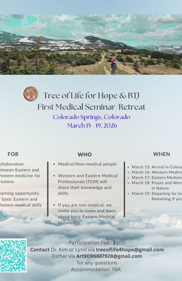 We cordially invite you to the first medical seminar/retreat in Colorado Springs, CO, from March 15 to March 19! This seminar will be held along with another mission group “BTJ”.