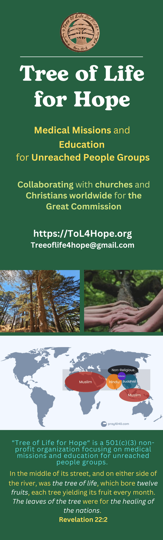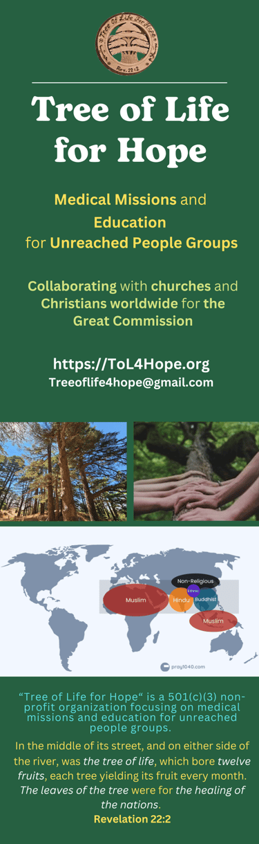 Tree of Life for Hope will host a Special Meeting on November 6 at 5:30 PM in Main Building ATCR 207/209, where we will present our mission works. We will also have an Exhibitor Booth at GMHC 2025 to meet with those interested in serving unreached people groups.